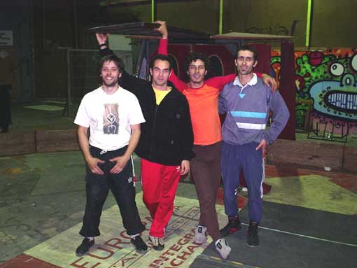 Pablo, eu, Ley e José – amigos da Troupe de Circo Cortocirquito (Hospitalet – Barcelona – março de 2004)