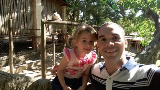 Com Alicia passeando no sitio/festa em Joaquim Egídio, junho de 2015.